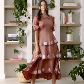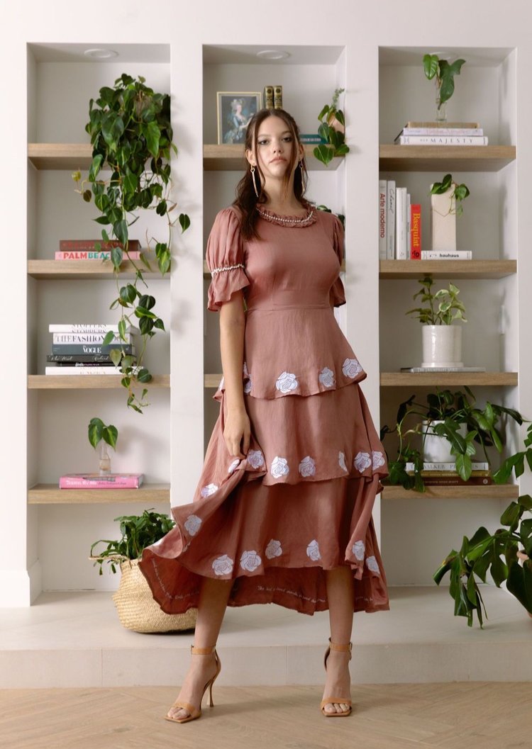 Cada pieza, cada patrón, cada detalle de la nueva colección de Carolina Benoit se enfoca en diseños atemporales que representan la esencia de la marca, que siempre se ha identificado por ofrecer prendas elaboradas para enaltecer el poder femenino. La colección es producida de manera cien por ciento ética y sostenible, utilizando telas como Seda Vegana (Vegan Silk), que se produce solo generando 1% de agua y es biodegradable; Eco Denim, producido completamente a mano sin electricidad y la impresión y estampado de telas por bloques (blockprint), que es elaborada con tintas naturales y mínima explotación de recursos perjudiciales para el planeta.