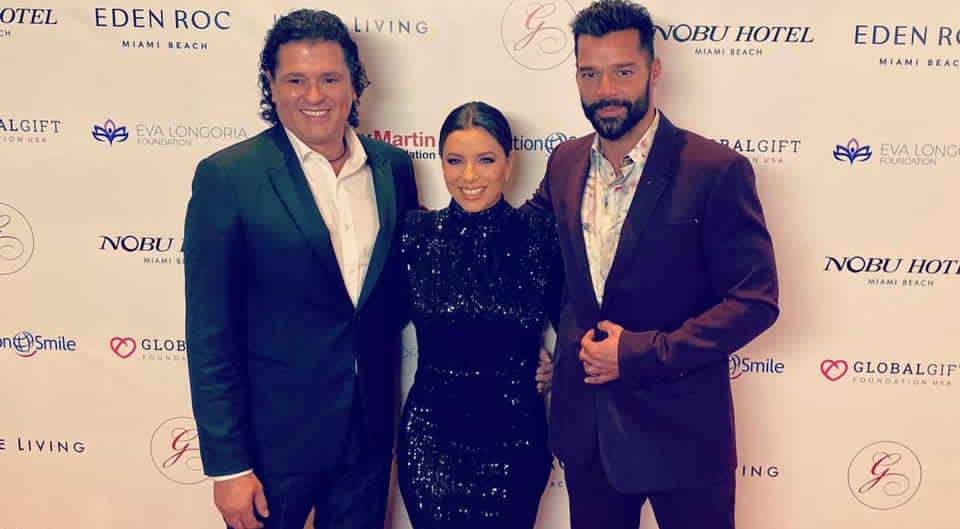 Longtime pals Ricky Martin, Eva Longoria and Carlos Vives posed together at the dinner. The gala included a cocktail reception, a three-course meal with wine pairings and live entertainment.