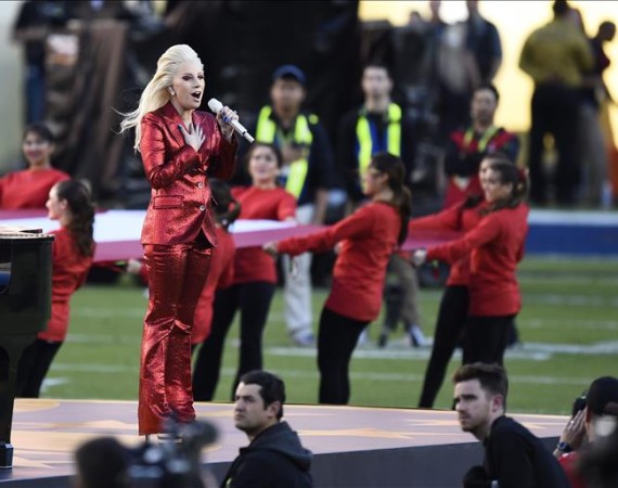 Pop star Lady Gaga took over the opening of the U.S.’s 50th Super Bowl by belting out the national anthem to thousands of football fans at Levi’s Stadium in Santa Clara, California.
